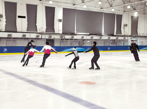 运动员参加双人滑训练营课程。